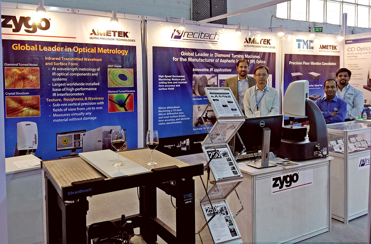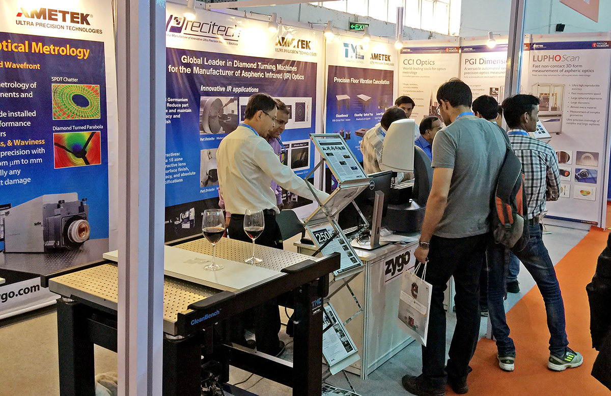 After CIOE, Precitech participated in the second Indian Diamond Turning workshop hosted jointly by IIT Mumbai and Mechvac in Mumbai. The focus of this workshop was Advances in Tooling for Diamond Turning and live demonstrations of tool normal machining and Precitech's exclusive Virtual Center Technology were given at Mechvac. Following the workshop Precitech along with Taylor Hobson, Zygo, and Vision Research exhibited at Laser World India in New Delhi. On display in our booth were a Zygo Zegage, TMC vibration cancellation table, part samples from Precitech, and several Vision Research cameras.