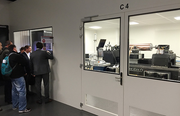 The focus of this conference was manufacturing techniques for injection molding and roll to roll processing of polymer optics. During the factory tour of the Fraunhofer Institute for Production Technology (IPT) one of the stops was their new Precitech DRL1200 air bearing drum roll lathe.